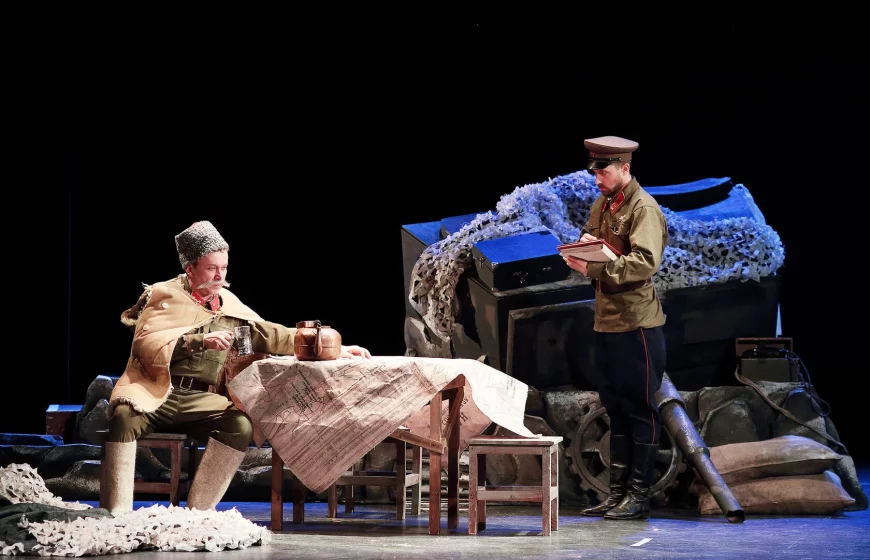 Судьба человека на войне, право выбора и долг, необходимость сохранить в себе человеческое перед лицом катастрофы – главные мотивы произведений Константина Симонова. В романе-эпопее «Живые и мертвые», одном из лучших произведений о Великой Отечественной войне, они звучат с потрясающей силой. Театр обращается к событиям 1942 –1943 годов и делает главным героем Федора Федоровича Серпилина. Тесное переплетение военных подвигов и трагедий, трудных решений, личной драмы воплощает в себе все то, что стало страницами книг и учебников, памятью о невероятных усилиях, принесших Великую Победу.