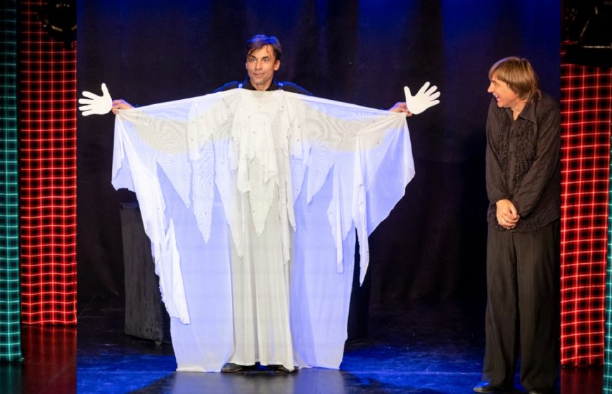 Любой из сидящих в зале при желании будет иметь возможность побывать на сцене. В заключение артисты поделятся своим самым большим секретом! Они покажут, как в домашних условиях можно изготовить самое настоящее привидение … Как говорил Карлсон: «Дикое, но симпатичное!»